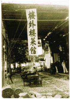 似乎谁来杭州,都要吃一次楼外楼,连外国友人也不例外。1921年5月1日,芥川龙之介受大阪每日新闻社的派遣,乘火车从上海来到杭州,也去了楼外楼,还留下了一张珍贵的照片。这张照片是当年陪芥川一起作杭州游的日本大阪每日新闻社驻上海记者村田孜郎拍的,也是迄今为止我们所能见到的最早的楼外楼影像资料。照片上,芥川龙之介坐在饭馆外面的树荫下,“一边喝着老酒,一边用筷子夹食生姜煮鲤鱼”。
