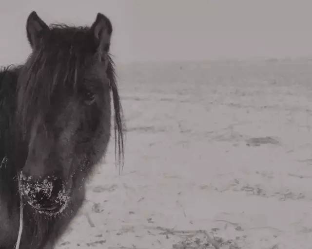 冬日里吃雪的老马,四脚被缚在雪地上的老马——是动物的柔弱时刻,而不是强硬时刻,让我们看见亘古时空中的近巫的庄严形象。试着凝视一匹老马的眼睛,它们的柔弱对我们是一种启迪。