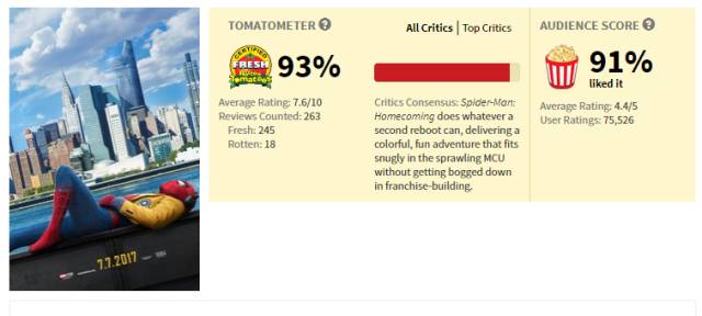 本片在北美口碑相当不错,烂番茄大众口碑与专业口碑都获得了93%的新鲜度,我们非常期待它能为开始走套路的漫威宇宙带来新鲜的活力。