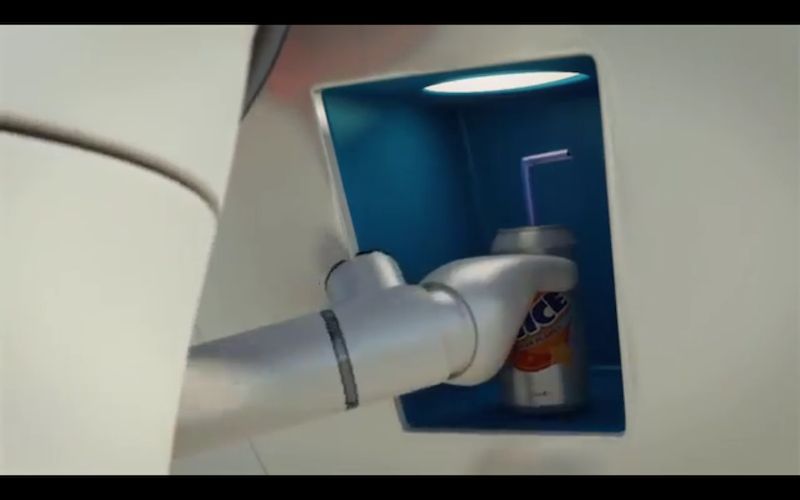 未来世界,只要动动手指,快递员就被机器夹出了太空舱,一秒变成夹娃娃机里的娃娃。