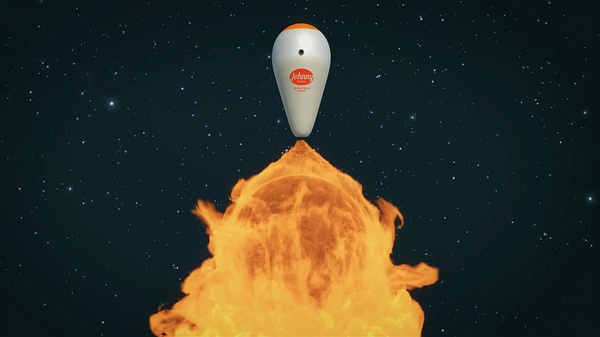 在浩瀚的宇宙中,一架外形酷似灯泡的宇宙飞船划过星空。