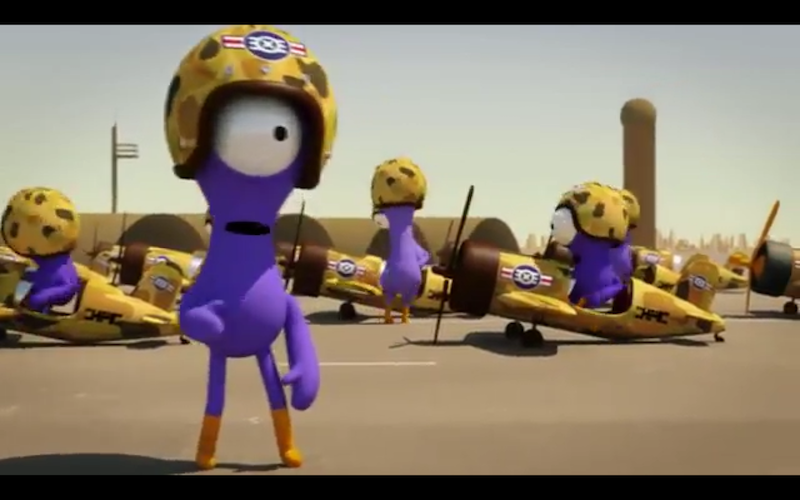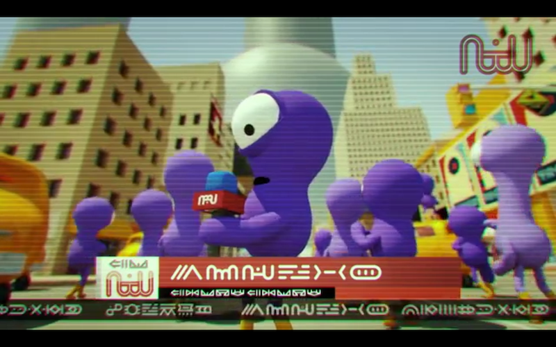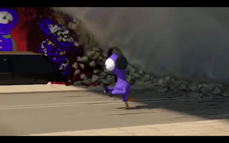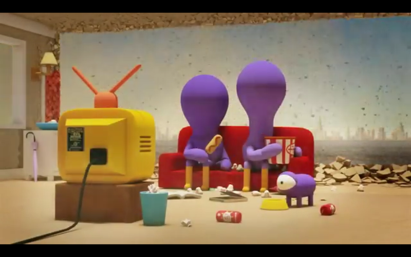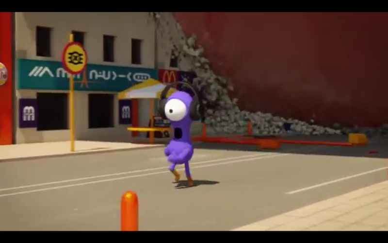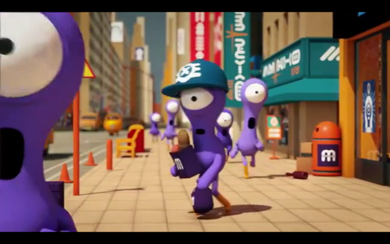 这个不知名的星球,街道宽敞,有着各种各样的商店,看起来是商业很发达的城市。星球的居住者正是这些紫色的小可爱,他们一出场就个个目瞪口呆,惊慌失措的样子,好像发现了什么了不起的事情。