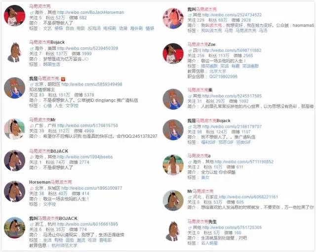微博上光以马老师为名的微博就多达几十个,以下几个都是粉丝几十万的。