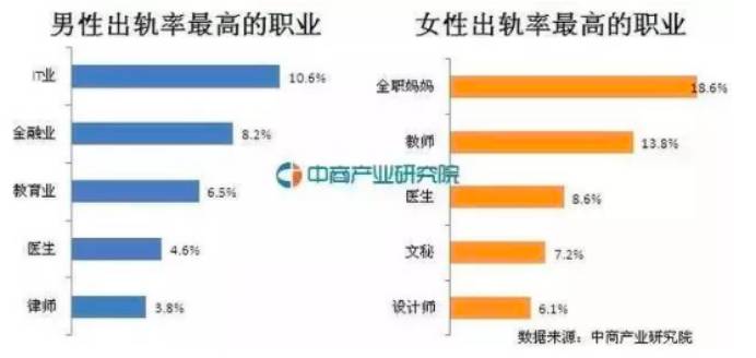 而离婚原因中,出轨是最普遍的原因。在出轨职业中,全职妈妈和IT男是出轨率最高的。