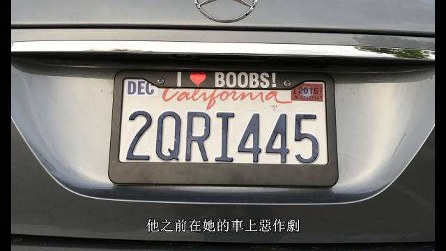 她曾经换了夏琵洛老师的车牌外框,新外框上写着I heart boobs(我爱乳房)。