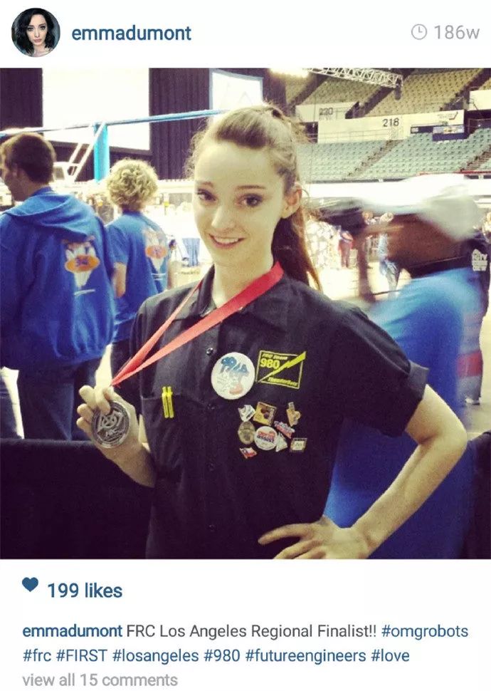 你以为皮相姣好就算了吗,艾玛的爱好还很酷,除了是一名业余轮滑运动员,她还沉迷机械,进修机械工程,在机器人竞赛中担任操控员和导师。