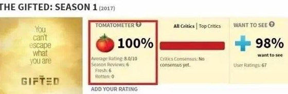 接下来老万也不甘示弱,最近FOX推出的X战警衍生新剧《天赋异禀》,刚开播烂番茄新鲜度就飙到了100%,虽然现在已经回落到76%,但依然强势碾压同期的《异人族》等漫威新剧。