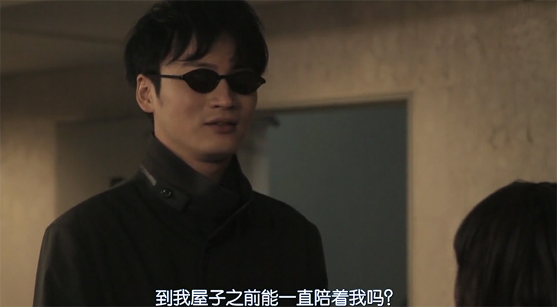 男主失明的原因也在影片最后得到了解答,是在电梯口被人往眼睛里泼了不明药物,影片以男主失明后伏在地上哭泣的画面结束,随着片尾曲冷漠的女声响起,演员表的出现,故事似乎也就此结束了。