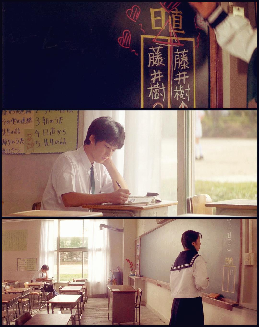 在另一个画面里,高烧缠绵病榻的女藤井树,也在不断呢喃:“你好吗?我很好。”回忆起初恋的她,也在其中完成了对青春的追寻。