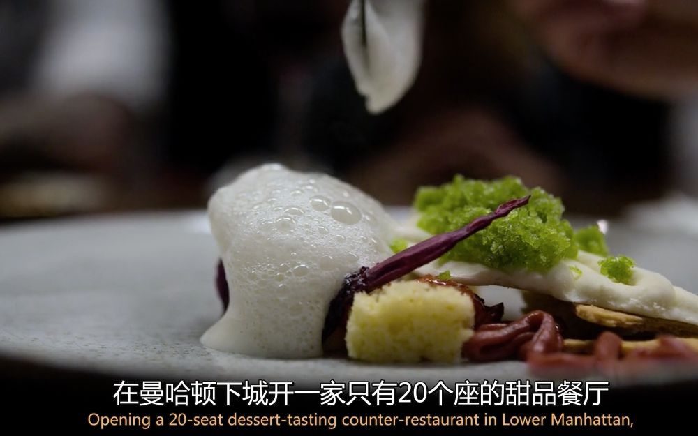 后来他得到了另一家餐厅的邀请,那家餐厅专做甜点,只有20个座位,主厨就像调酒师一样在吧台边为顾客现场制作食物。