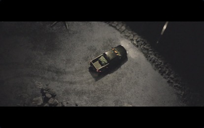 在一个俯视的全景镜头下,皮卡停在被灯光照亮的河边,色调黑暗沉重。车里传来的是躁动的音乐,而福斯的孤独像雪地上的轮胎印一样清晰。