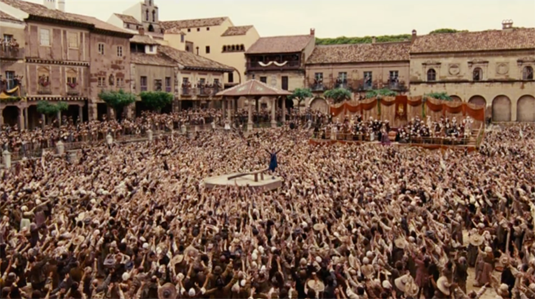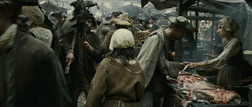 正是在这里,该片在影史上留下了浓墨重彩的一笔。格雷诺耶站在广场中央的行刑台上,将少女香滴在手帕上,伸出双臂向广场民众挥洒。所有人都目眩神迷,对着格雷诺耶欢呼。后者伸出手帕,松开手,任其飘扬。广场上的所有人都失去了理智,少女香气撩拨着他们的神经,男男女女都开始宽衣解带,和陌生人亲吻,抚摸着对方的躯体,最后达到集体的高潮。
