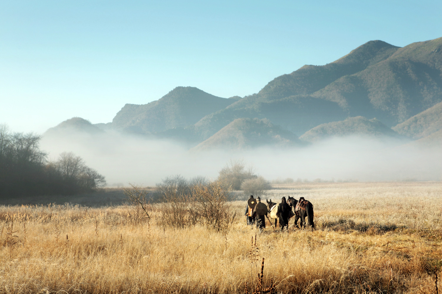 隐娘在烟火气中完成转变。她救了聂锋和田兴后,与他们同住村屋。一宿沉寂,浓雾弥漫。她在火炉旁生火,负镜少年给她扎伤。袅袅炊烟,给这清冷的世界平添了日常的气息。后来,等她如约返回村子时,负镜少年朝她粲然一笑,挥手跑下坡来迎接,牵过马,跟在她身后。素淡的生活气打开了她封闭的内心。