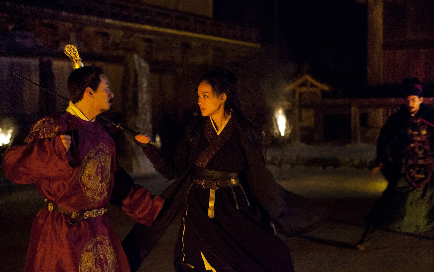 侯孝贤以“隐”来凸显刺客的剑道,兴许也是他内心诗意的外化。《酉阳杂俎》中有言:“凡禽兽必藏匿形影,同于物类也。是以蛇色逐地,茅兔必赤,鹰色随树。”编剧阿城,亦设想过隐娘趁着云过日头檐隙一暗的片刻,飞身掠过檐隙,进了厅室,蜷伏藏身斗拱之上,守卫举首望去,唯见飞鸟扑簌。