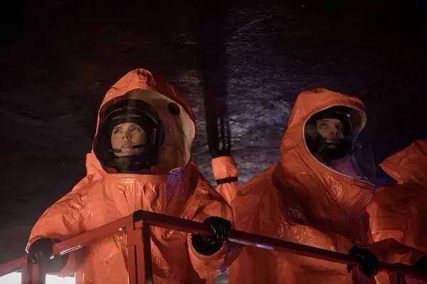 《降临》中科学家第一次进入腔体,抛出的荧光棒不受重力作用下落。人走在垂直通道里如履平地。