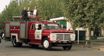 他和选美皇后以及小镇领导一起,在消防车上游街示众。