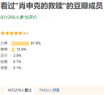 豆瓣第一部,有超过100万用户标记看过的电影最近诞生了,没错,就是《肖申克的救赎》。