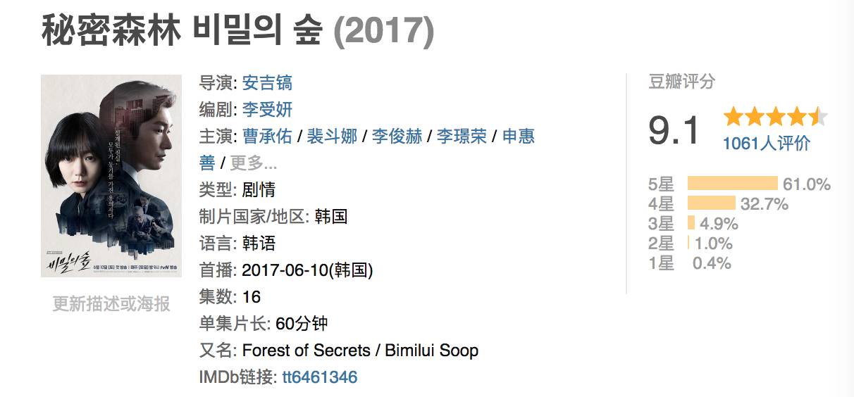 没错,说的就是近期的高分韩剧,《秘密森林》