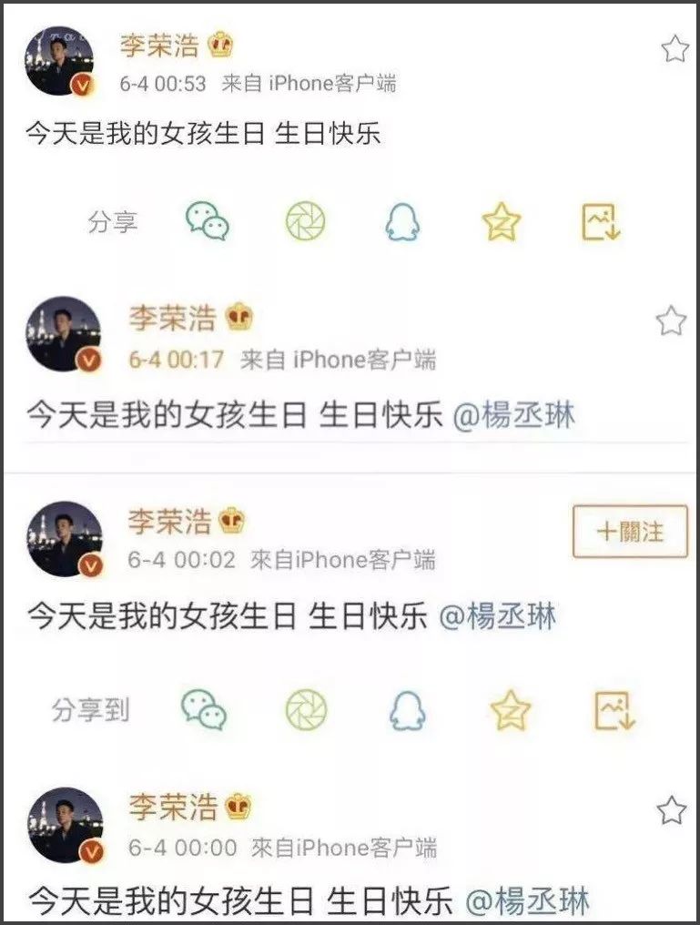 杨丞琳生日那天,李荣浩和微博较起了劲。