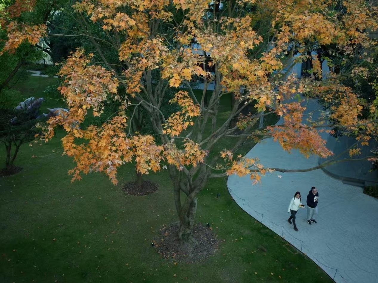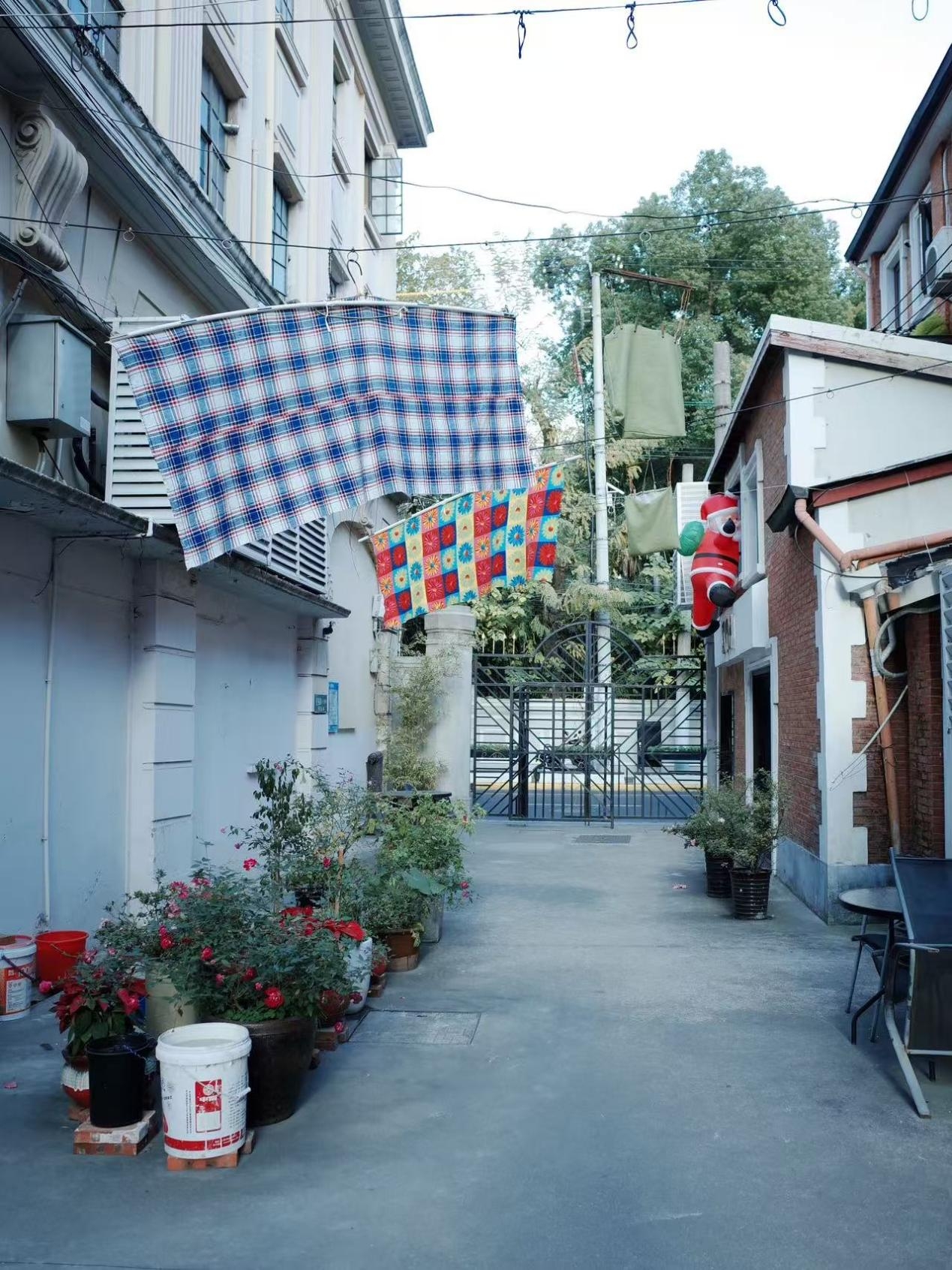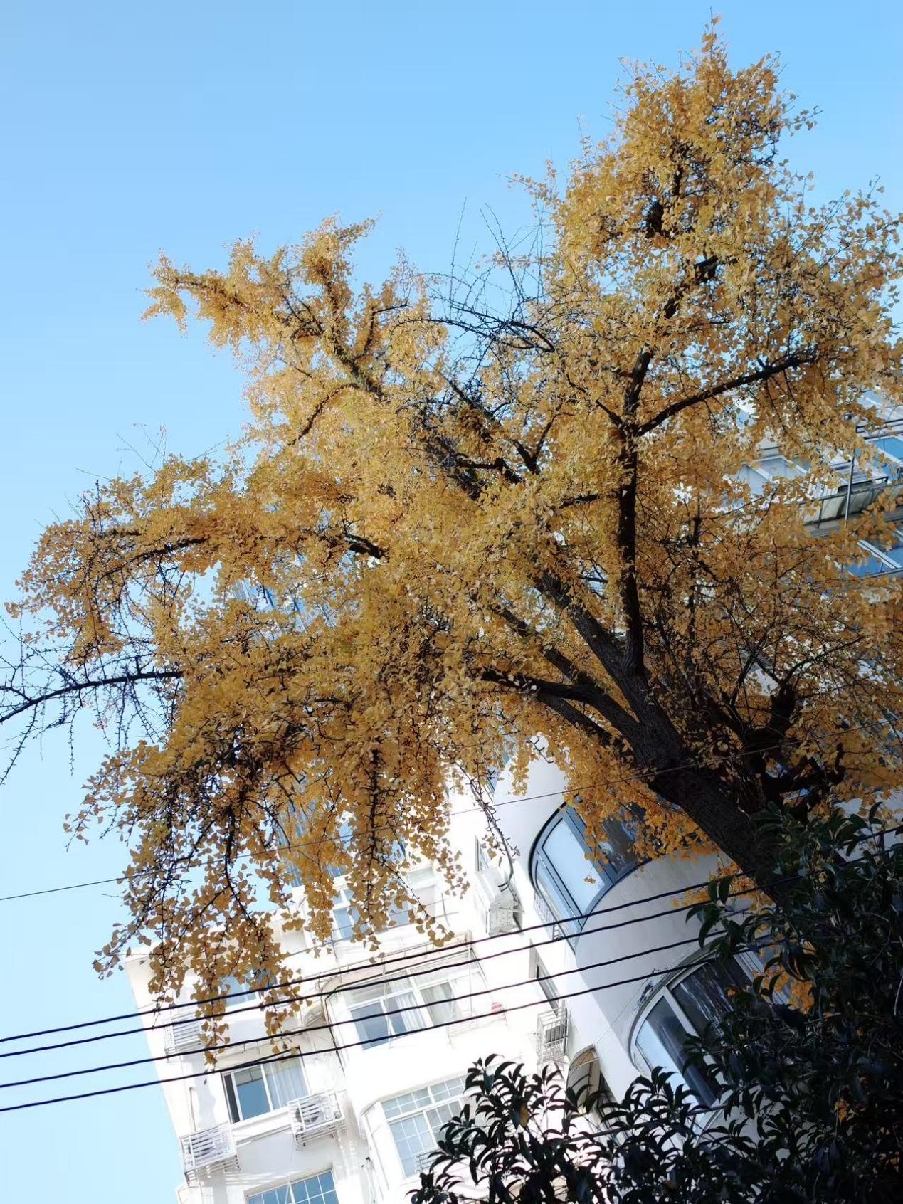 从平安大楼出来,我们继续游荡,然后被一个弄堂里晾晒的彩色床单吸引,便走了进去。没想到这个弄堂里面四通八达,连接着南京西路、陕西北路、威海路等好几个不同的小区,且小区内的建筑也十分有趣,既有老式公房,也有八九层的高楼,既有新旧里弄住宅,也有不知名的老洋房……更可喜的是,小区内有一棵十分高大的银杏树,金黄的树叶在阳光下金灿夺目。