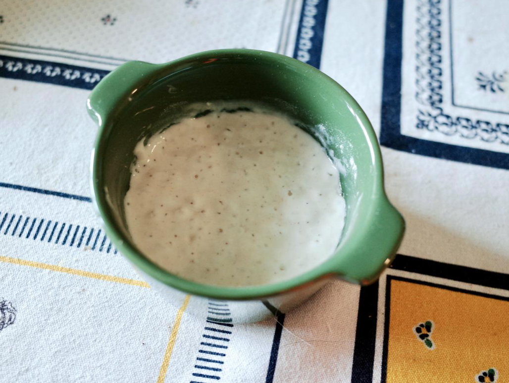 鲁邦种起种需要用到全麦面粉,因为全麦面粉的麸皮和胚芽中自带天然野生酵母菌和植物乳酸菌。具体的起种方法是:取1:1的水和全麦面粉混合(我试下来5g水+5g全麦粉就足够了),盖上盖静置24小时。