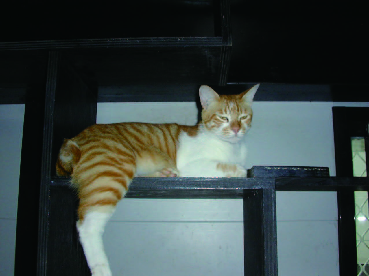 这只“SEVEN”猫,我一样注意了它许久,它总在晚间九点到十点间出现,若没等到客人喂食,那么店里的女店员会偷偷把它引到角落倒些食物给它,所以在吃食上它是无虞的,唯一需要解决的是绝育的问题,但重点是它的肚子圆圆的,完全分辨不出是个孕妇,还是刚产过小猫的妈妈猫。若轻易带它去手术,那一窝嗷嗷待哺的小猫就惨了。为此我还搞跟踪,一路尾随它进巷子,拐进大停车场,最后眼看着它跃上墙头,消失在屋顶上。