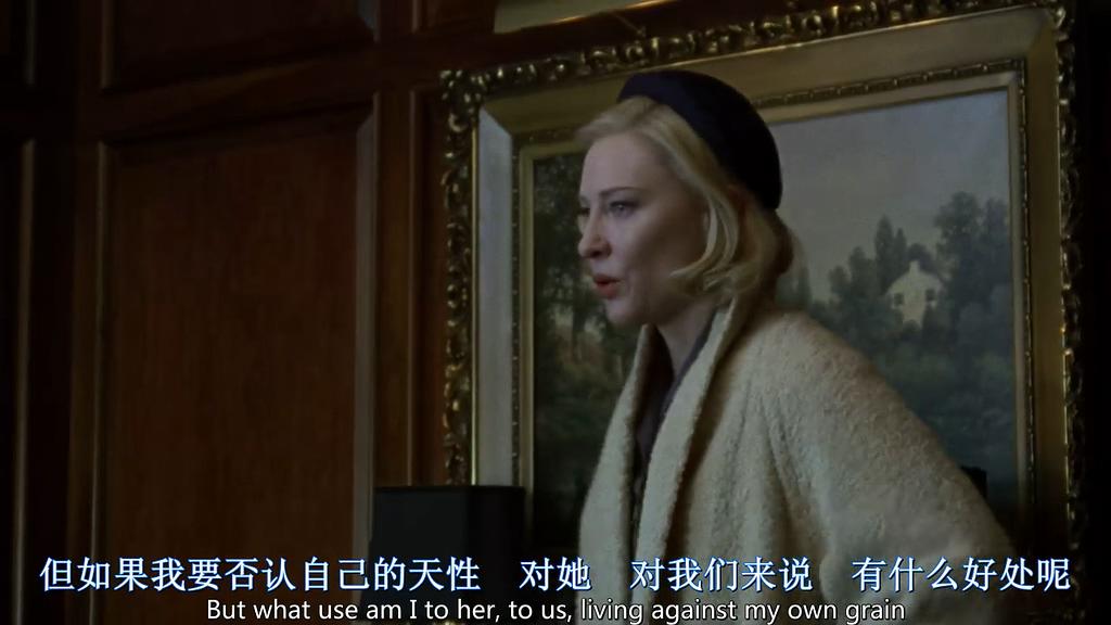 半个多世纪前,同性之爱在当时被认为是反道德、反伦理的,不被社会接受和承认,甚至是被唾弃的。但在电影的最后,卡罗尔却主动放弃了女儿的抚养权,她几乎是直接承认了自己与特芮丝的关系,站在在道德的临界点上,她选择的是爱情。