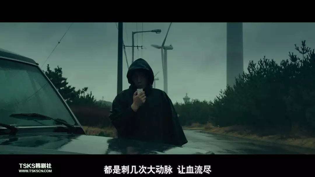 就在这时,他在一个大雾天气里追尾了一辆汽车。下车查看之际,他发现了后备箱里流出来的血液。电影的另外一位主人公闽泰柱出现了。
