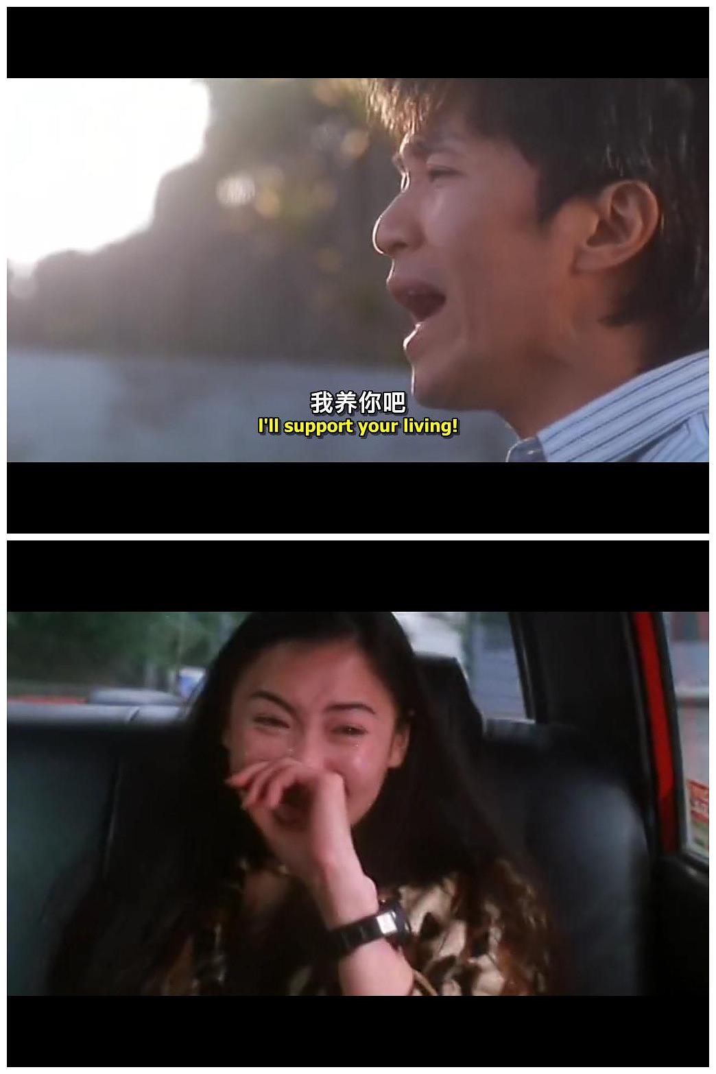 《喜剧之王》上映于1999年,是当年的贺岁片,里面有一段经典的台词,是主角尹天仇和柳飘飘爱情升华的对白,很多人对这部影片念念不忘的原因就在于此,原来这世间上最动听的三个字不是“我爱你”,而是“我养你”。