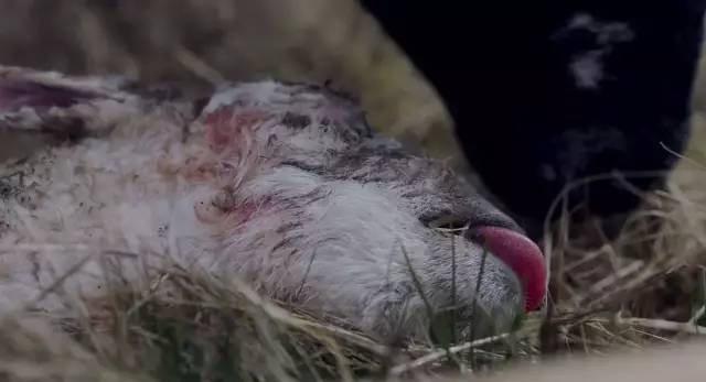 刚出生便死亡的羊崽,身上还带着血液和羊水。