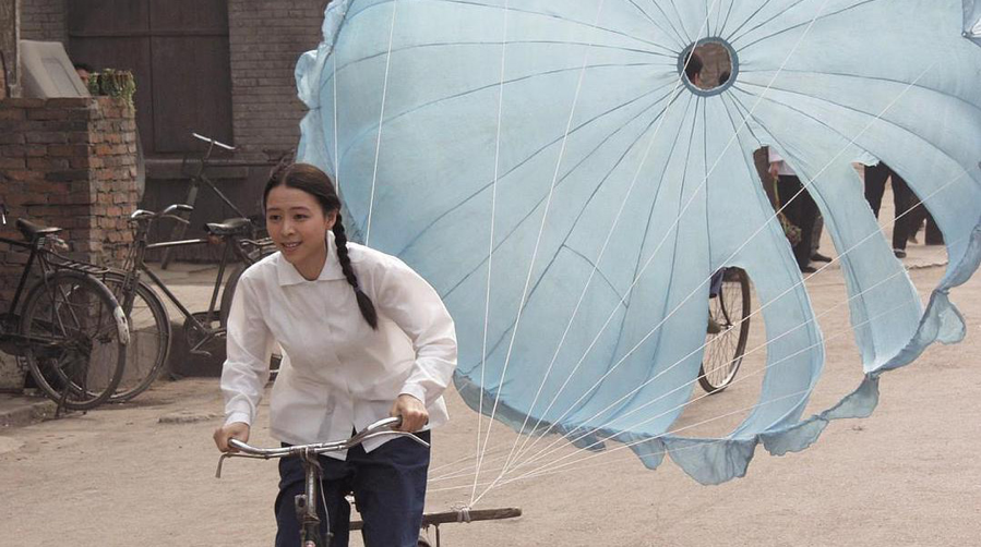 影片的名镜头大概就是:在姐姐自知当伞兵无望后,用床单DIY了一个降落伞,绑在自行车后座。姐姐骑着车,穿行在市场街道,无视众人的目光,张开双臂,脸上的笑容里盛着风,流畅自然又倔强脆弱。