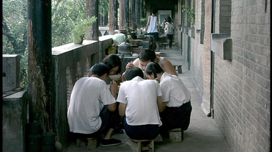 电影一开始,是一家五口人围坐在小桌边吃饭的画面。本该是温馨的晚饭时光,画面的构图却给给人一种难以言说的压抑感,随后响起的旁白来自家里最小的弟弟,旁白的语调也是麻木的,带着一种时过境迁的沧桑。