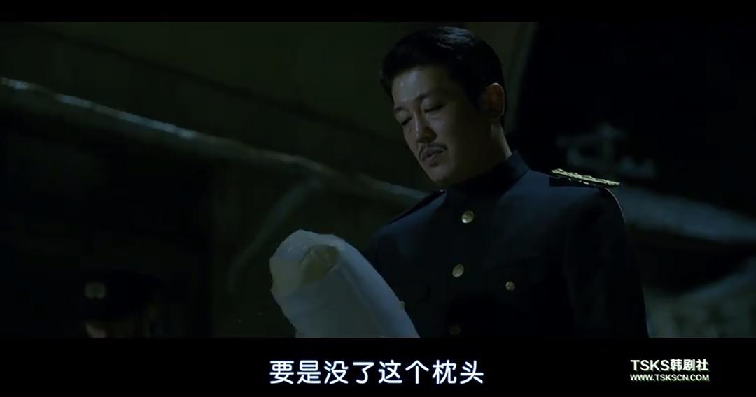 在影片结尾,柳正焕和金判秀为了保存原稿,兵分两路分散警力,柳正焕被追上的时候,怀里被搜出来的东西又是一个枕头。柳正焕也说了同样的话:“要是没了这个枕头,我就睡不好觉呢。”