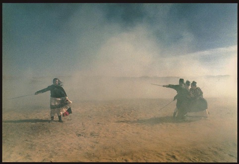 大漠孤烟直,长河落日圆。并行的马蹄,清越的笛鸣,打斗也是凌厉的,疾如风的,等人去楼空,只剩黄沙如雪月如钩。徐克的武侠片带一种古典的西部风情,框架是大的,浅的,儿女情长是小的,沉的。路过这荒漠后,恐怕再也没有人忘得了龙门客栈的金镶玉。