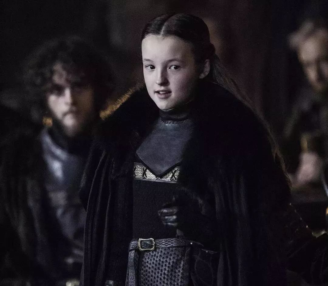 正式出场,是在雪诺和珊莎前往熊岛求助时,莱安娜小小的身子坐在大大的桌子后面,目光凌厉地审视着对方。