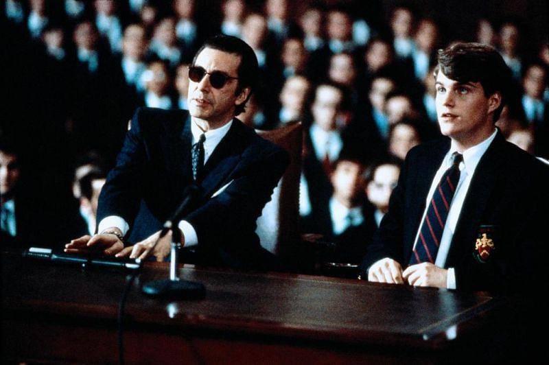 如果说,双人探戈是《女人香》中最细腻的一处演绎,那么弗兰克在结尾那场铿锵有力的演讲,就是老爷子全片最硬核的展现。