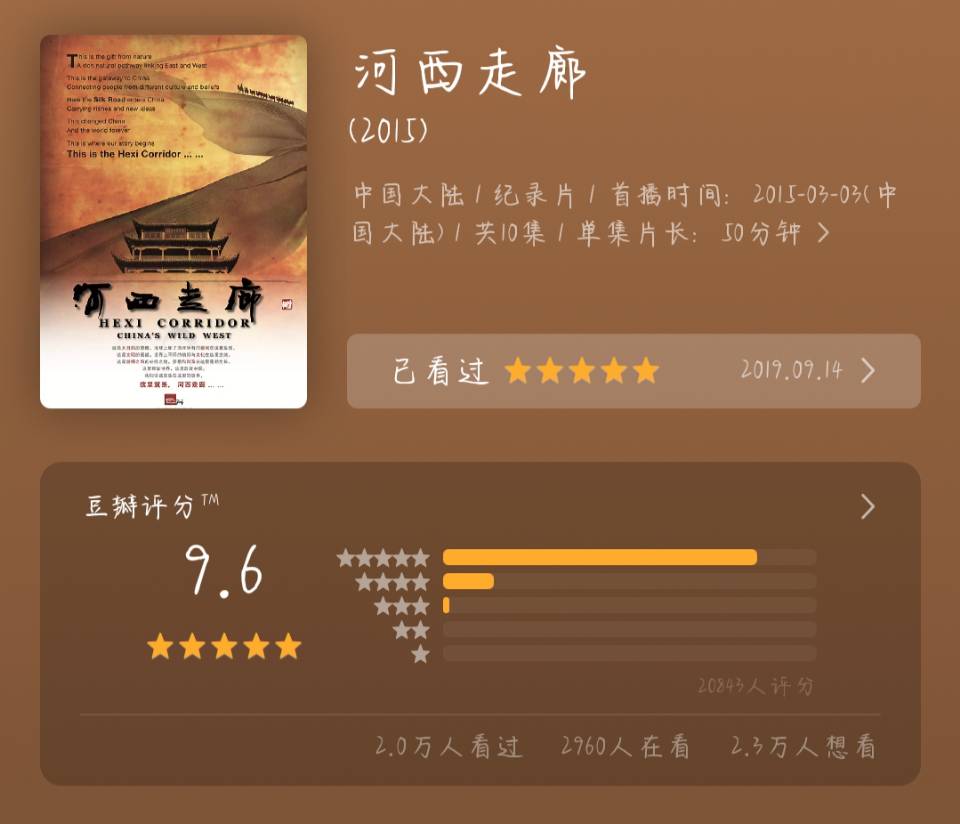让我们跟着央视播出的评分高达9.6的纪录片《河西走廊》,化身为沙漠里的孤独行客,穿越时光,重走那段金戈铁马的岁月。
