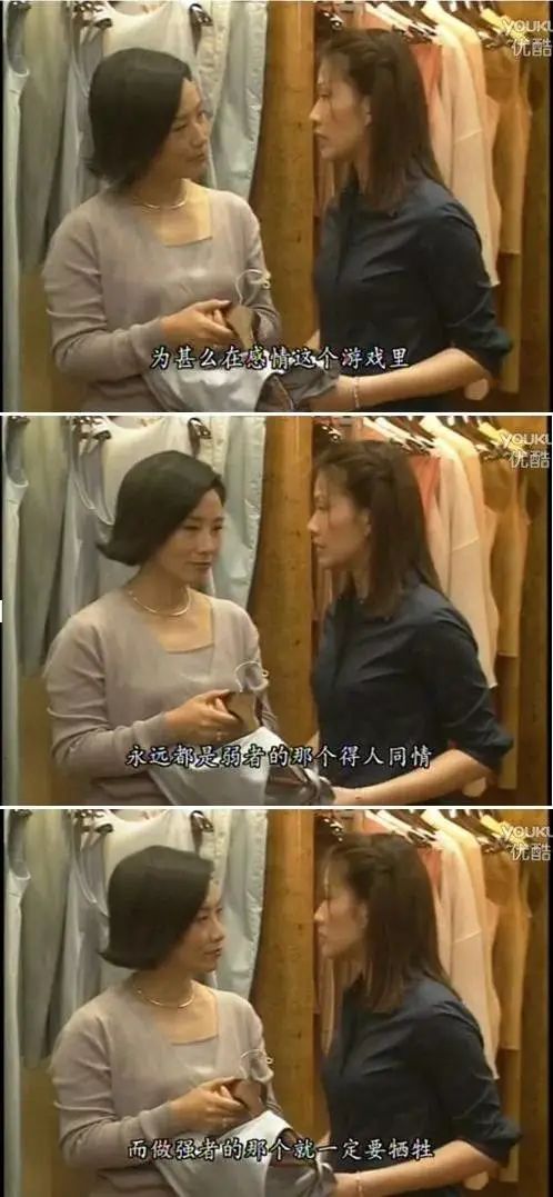 也会说:“为什么在感情这个游戏里,永远都是弱者的那个人得到同情,而做强者就一定要牺牲?”