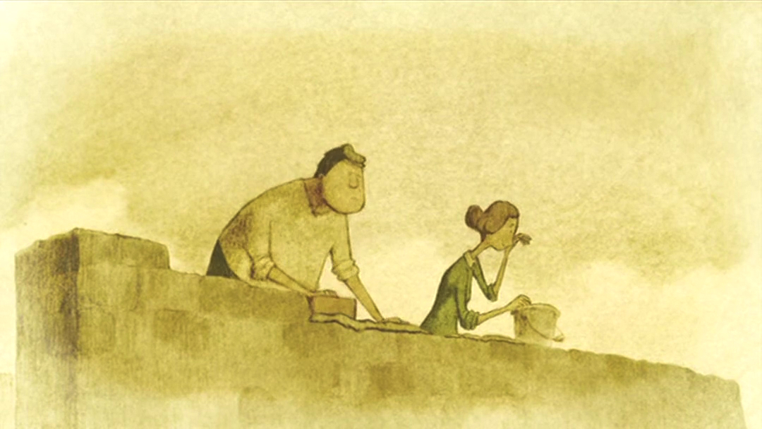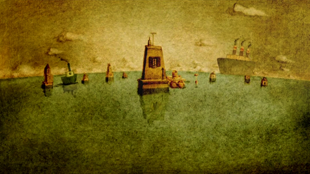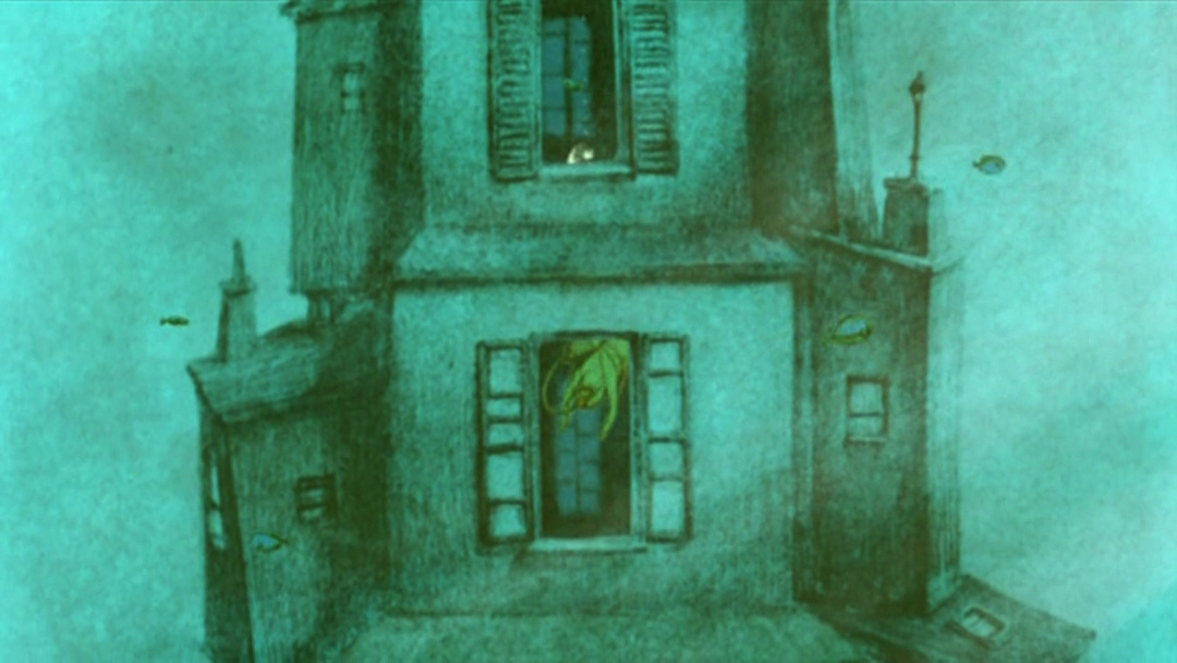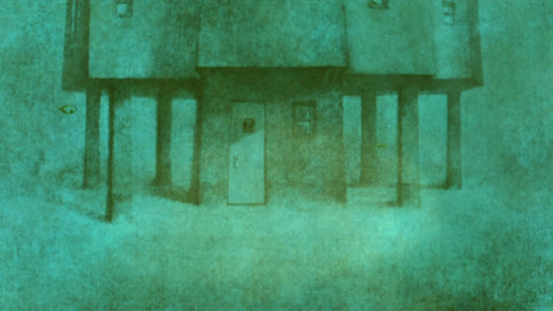 老人没日没夜地盖着房子,哪怕刮风下雨也不停歇。等到搬家那天,他一不小心,把那个一直叼在嘴边的烟斗,弄到了水里,烟斗慢慢下沉,落到了下面的一层。