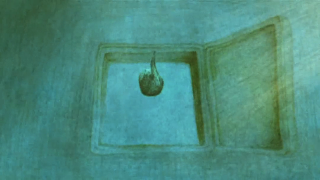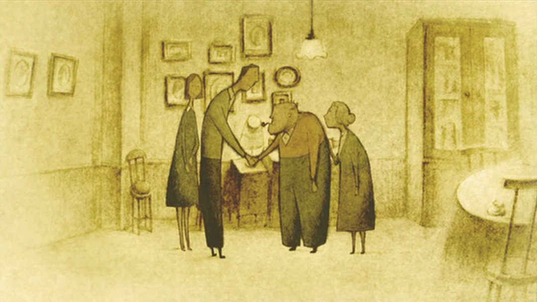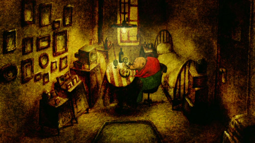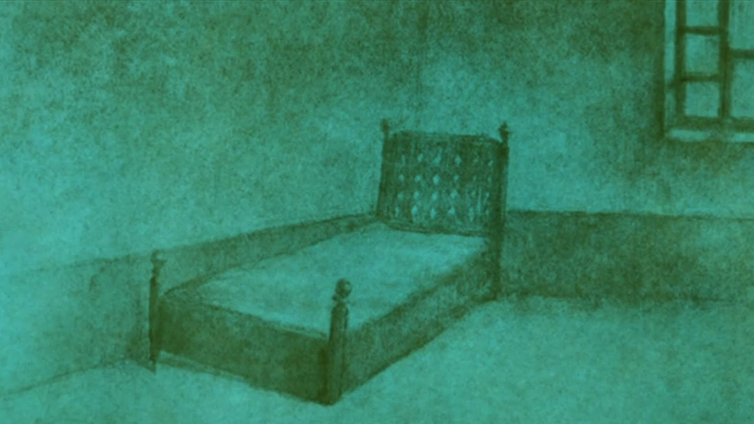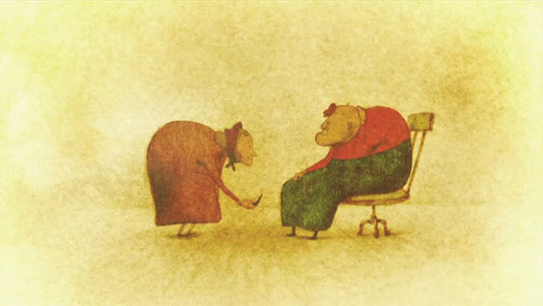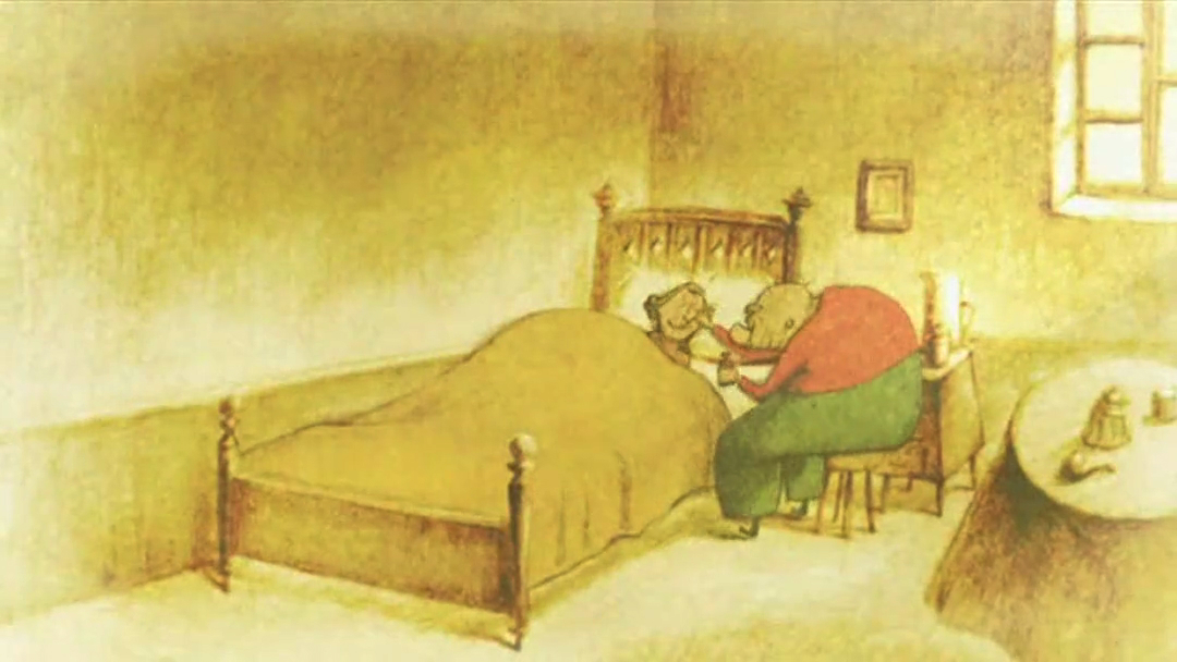 找回烟斗的老人没有回去,他打开盖子,潜入了下一层。下一层,角落里放着一张单人床,老人想起生病时躺在上面的老伴,自己坐在床边给她喂药。