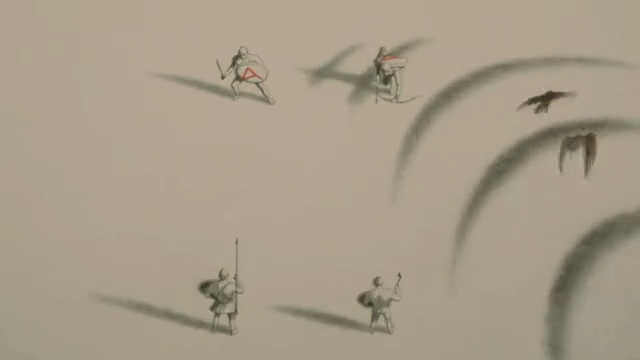 战斗有四人,一人使弓,一人使剑,一人用斧,一人用枪,两人一对,开始厮杀。没有人知道他们为什么而战斗,即不像国家之间的大战,也不像部落间的冲突,仿佛就是人性中那点可怕的杀戮欲望,让他们走上了战场。