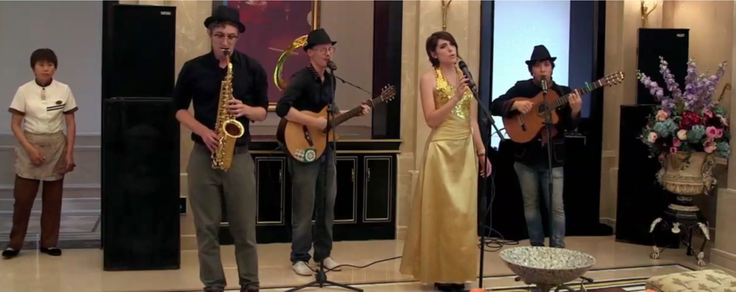 大卫就在其中。他跟三个才刚认识的几个老外,当场组成了乐队,马上就要上台表演。不过他们的表演,并不需要任何排练,也不需要演奏技巧。已是老手的“键盘手”告诉大卫,不用担心表演质量,只要皮肤不是黄色的,就可以上台。