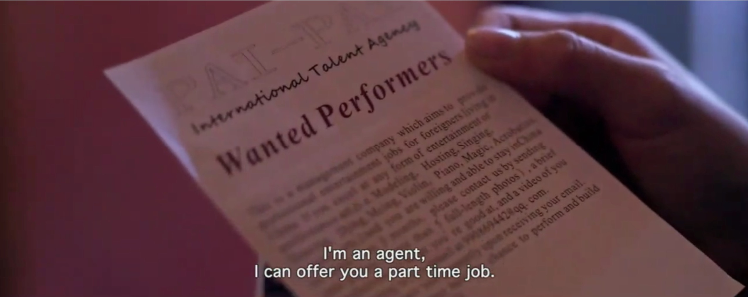 首先要找一批白人。这不难。Yana和Jimmy通常夜晚在酒吧跟外国人搭讪,递上介绍卡片,告诉他们自己是中介,可以提供表演、走秀等兼职工作,然后拍下他们的身材样貌,记下他们的特殊才艺、联系方式。用这种办法,他们积累了一批“白猴子”,有乐手、歌手、舞者和走秀模特,可以满足客户们的不同需求。