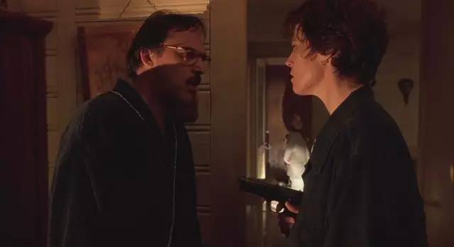 影片接下来用了整整半个小时,讲大卫一反懦弱印象,提起枪来保护家宅,毫不留情地打击闯上门来的这些暴徒。