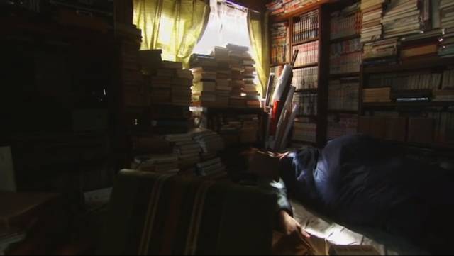 每天待在家看书看电影,房里很多书倒是真的。
