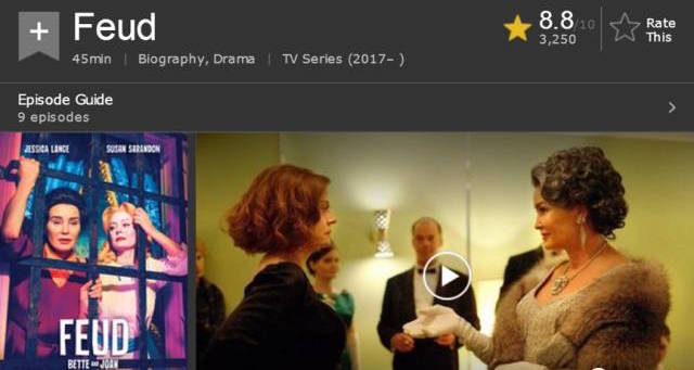 第一季故事重现好莱坞黄金时期两大女星琼·克劳馥和贝蒂·戴维斯的史诗级恩怨史,前几集聚焦在已为老妇的二人,在拍摄《兰闺惊变》的过程及前后,毫不掩饰地互相挤兑、诋毁、争风吃醋。