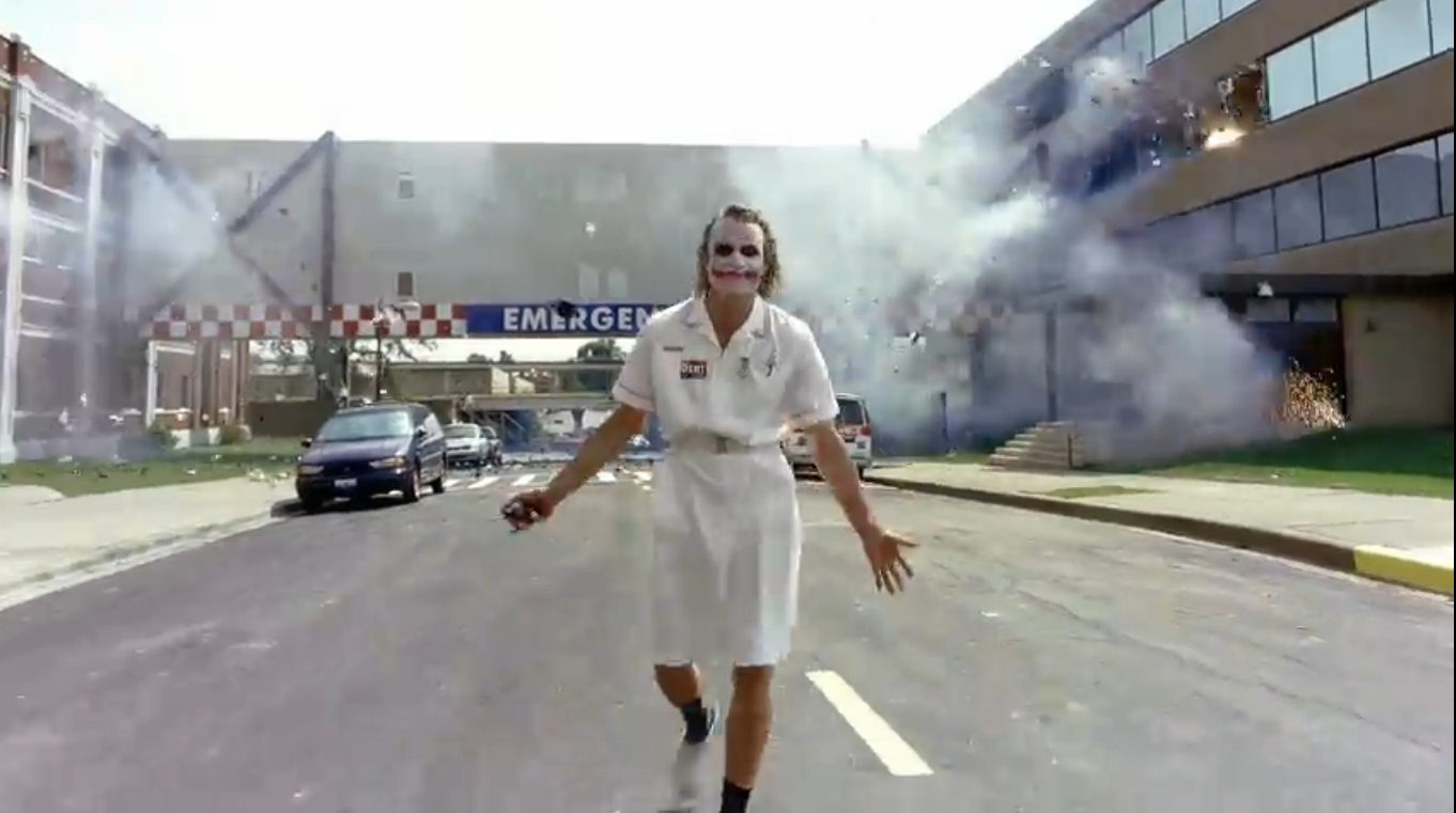 爆炸时出了故障,可诺兰没喊卡,希斯就即兴地演了下去,仿佛这就是小丑的本能反应。而最后呈现的效果,堪称完美。