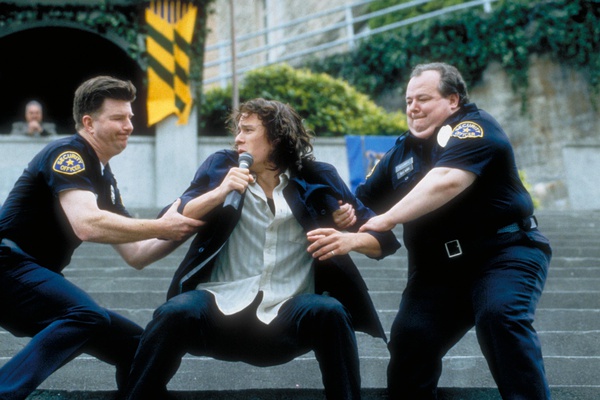 也许他唱得不是最好的,但20岁的希斯·莱杰,在操场的台阶上又蹦又跳,仿佛连来抓他的警卫都成了伴舞。你看着他,也许会想到这就是当年我们设想的潇洒的自己。
