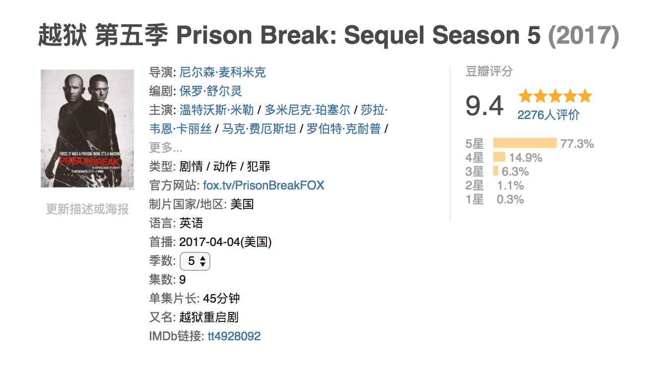 但对中国观众来说,这些都不是事儿,在他们心目中,《越狱》无可取代。